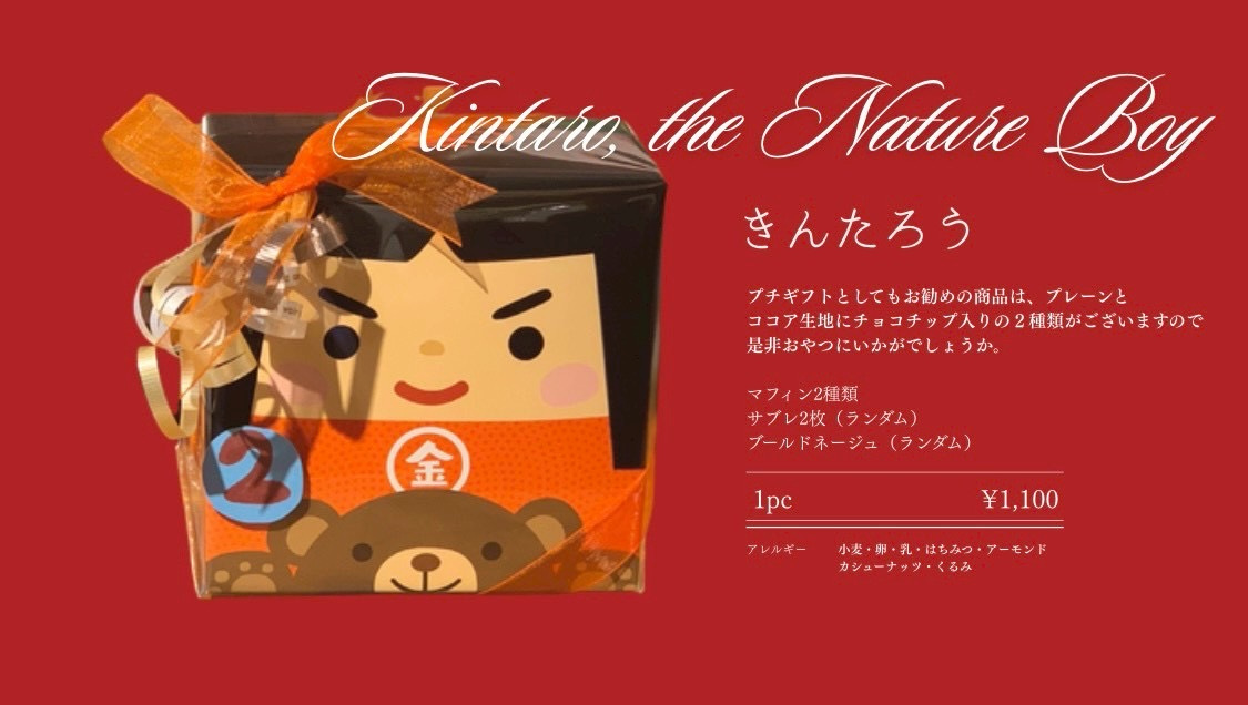 「きんたろう」は、端午の節句らしい雰囲気を感じられるギフトです。初節句のお祝いにもおすすめで、プレーンとココア生地にチョコチップ入りの焼き菓子も楽しめます。