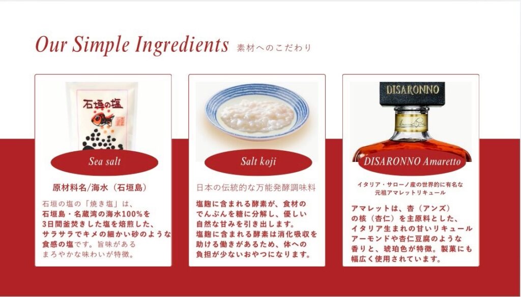 さらに、日本の伝統的な発酵調味料である塩麹を合わせることで、やさしい甘みとふんわりとした口どけを引き出しています。塩麹に含まれる酵素が素材のおいしさを引き立て、体への負担が少ないおやつとしても楽しめる一品です。